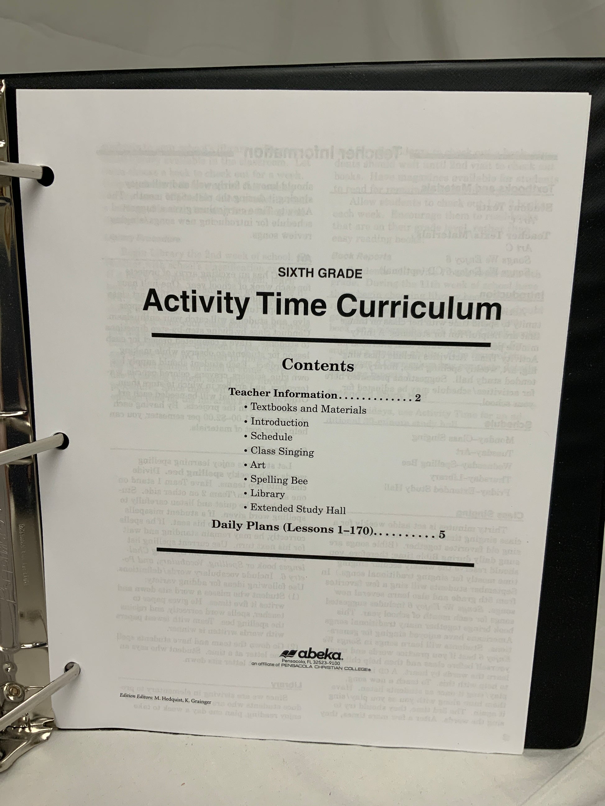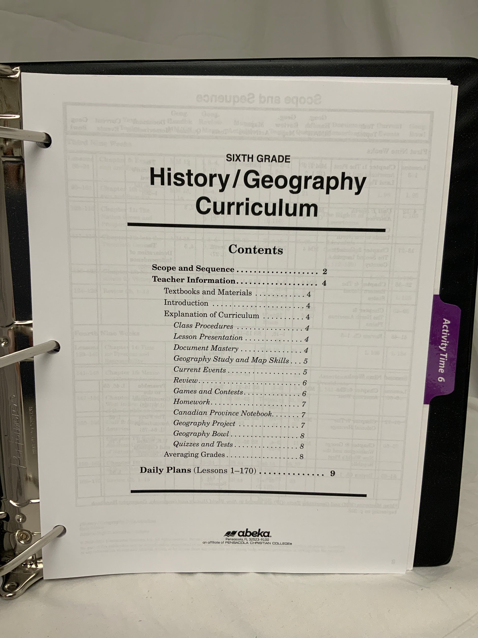 Used Abeka Sixth Grade Curriculum (Sixth Edition) Lesson Plans