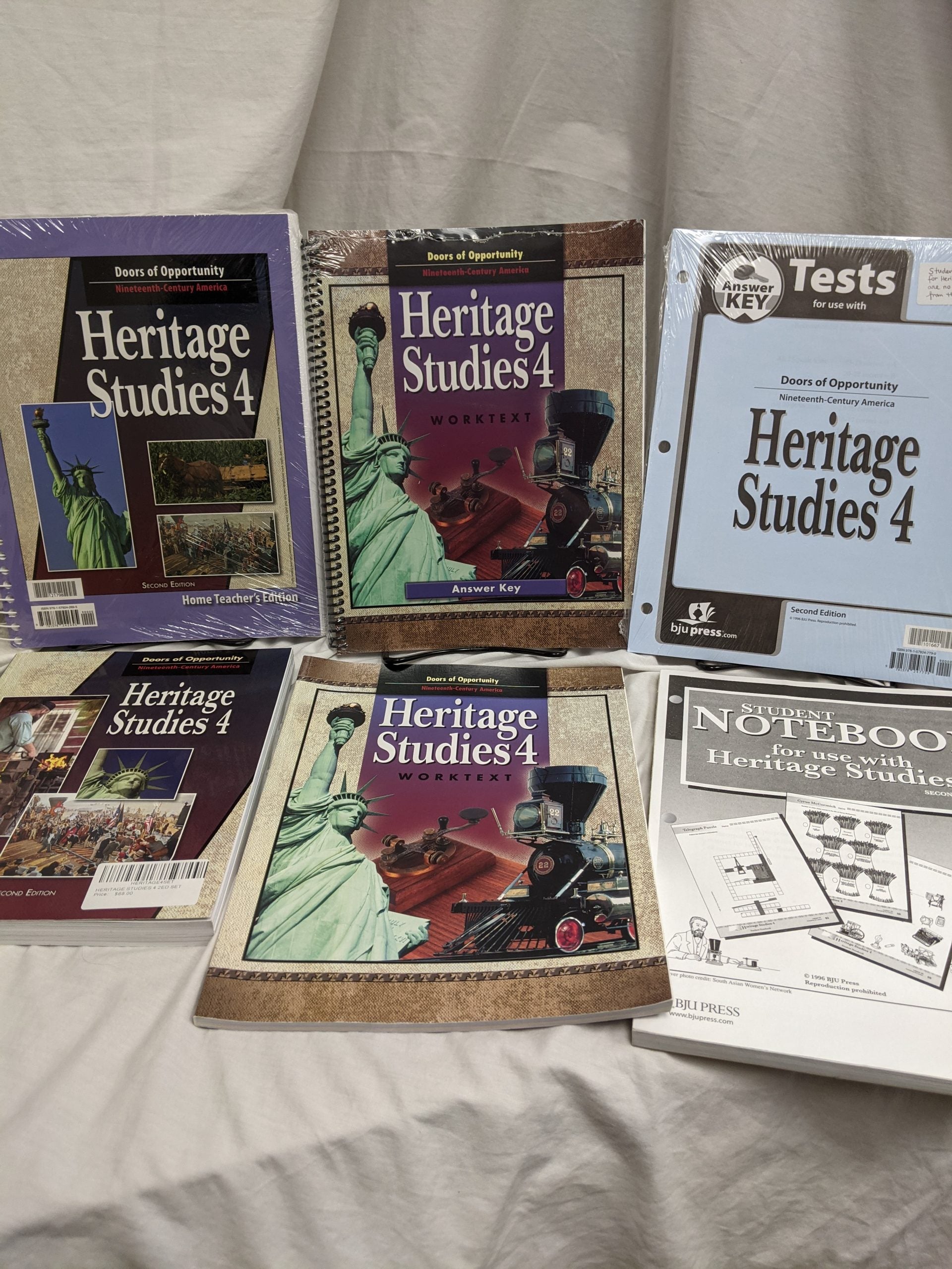 BJU Press Heritage Studies 4 2nd Edition set of 6: Student Text, Student Work Text, Work Text Anser Key, Student Notebook, Answer Key, Teacher’s Edition